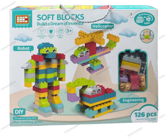 Krāsaini, mīksti sensorie bloki-klucīši bērniem, 126 gab.