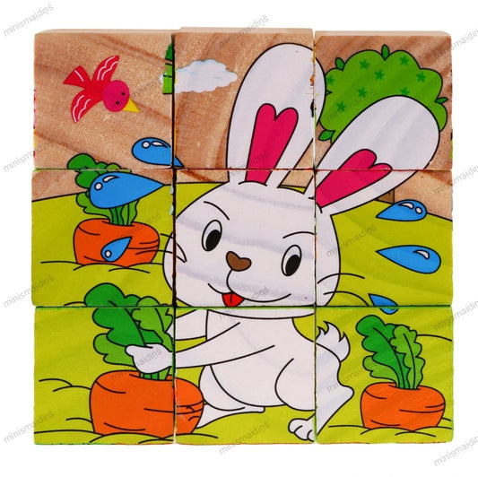 Galda spēle koka klucīši - puzle ar dzīvnieku attēliem