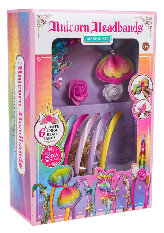 DIY galvas lentīšu komplekts “Unicorn Headbands” (6 lentītes + dekori), 6+