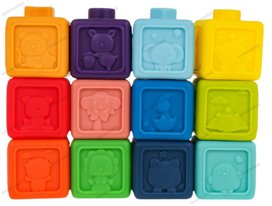 Gumijas, mīksto sensoro kluču komplekts bērniem ar matemātiskām aktivitātēm, 12gab.