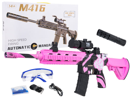 M416 ūdens lodīšu šautene (rozā) – automātiska / manuāla, 7–8 mm gēla bumbiņas