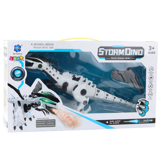 Ar baterijām darbināms dinozaurs robots ardūmu efektu, gaismām un skaņu (balts)