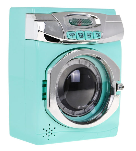 Rotaļu veļas mazgājamā mašīna ar skaņu un gaismu, veļas grozu, gludināmo dēli un gludekli