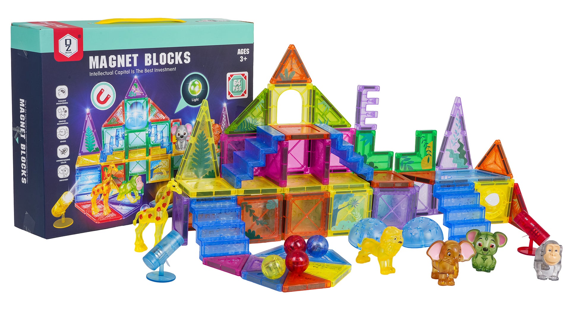 3D ZOO magnētisko klucīšu komplekts ar gaismiņām un dzīvniekiem (64 gab.) 3+