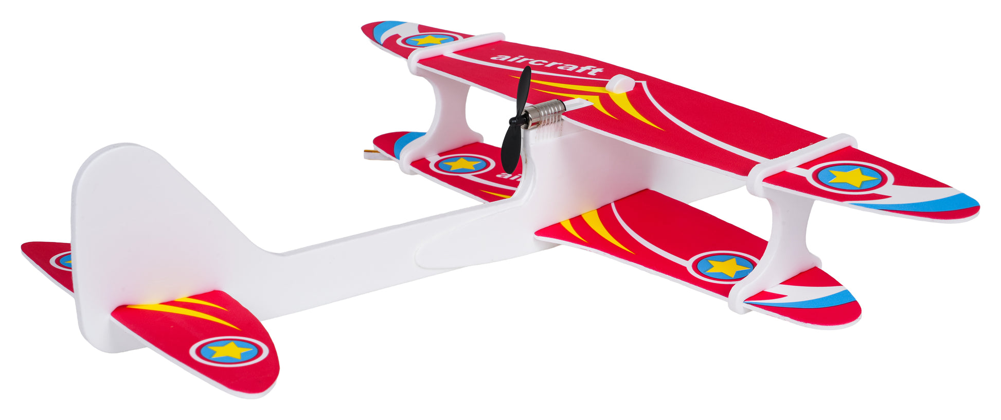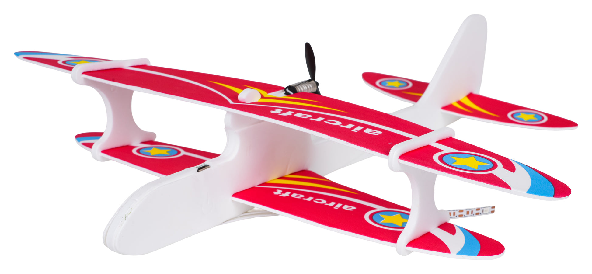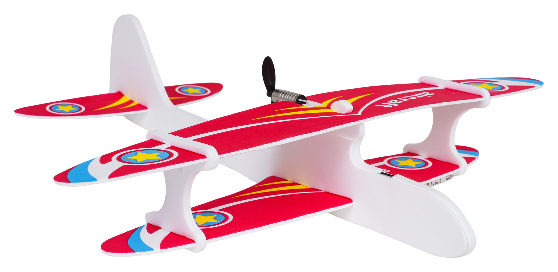 Vieglā un izturīgā putu lidmašīna ar elektromotoru ir radīta, lai bērns varētu baudīt stabilus, gludus lidojumus gan ārā, gan iekštelpās. Tā ir lieliska izvēle pirmajiem “aviācijas” piedzīvojumiem – lidmašīna ir vienkārši saliekama, ērta lietošanā un patīkama spēlei, jo ar vienu palaišanu tā sāk lidot vienmērīgā trajektorijā.