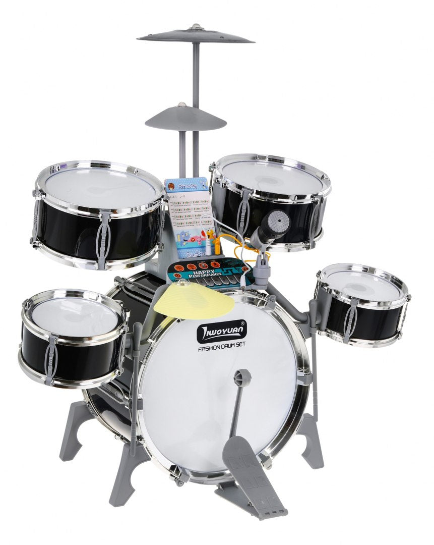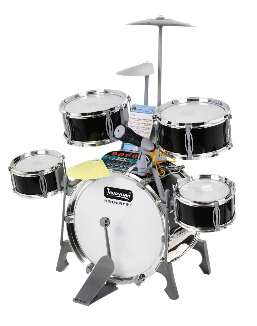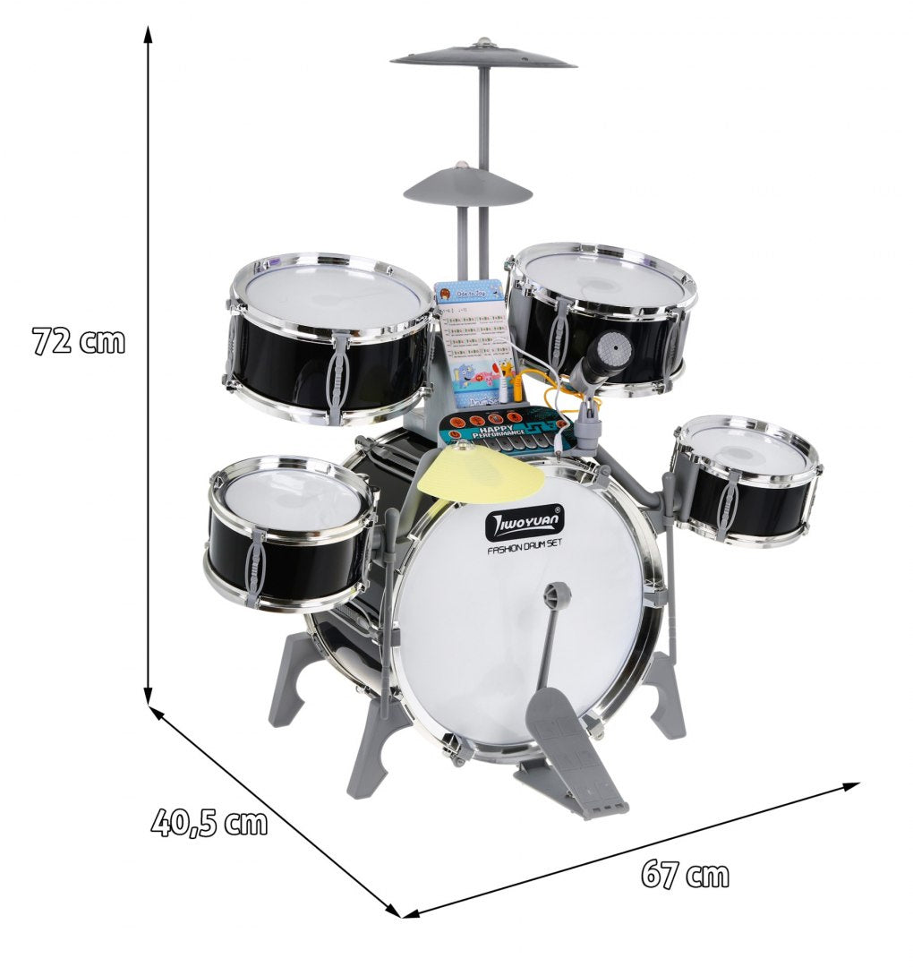 Lielais bungu komplekts ar gaismām, skaņu un mikrofonu (3+), melns