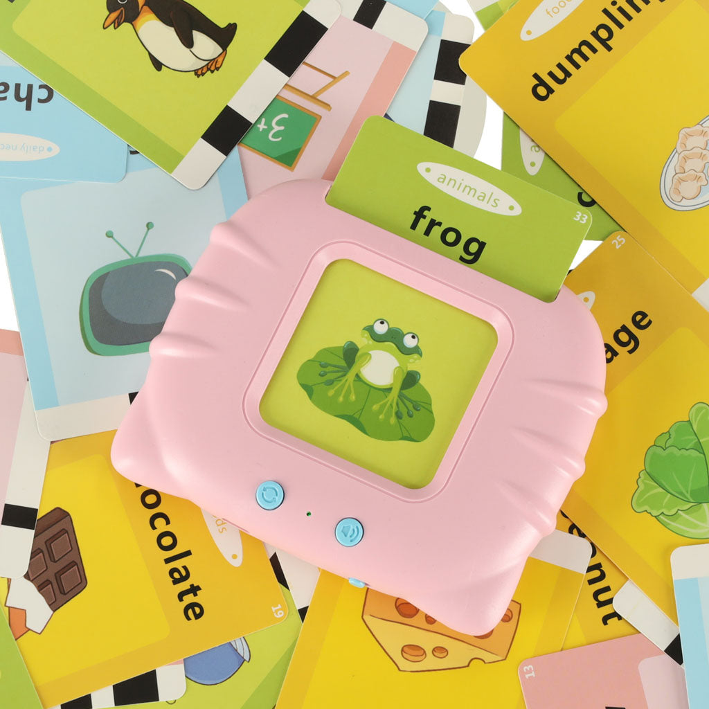 Interaktīvs kartīšu lasītājs bērniem – angļu valodas apguvei (100 divpusējas kartītes)Rozā/zils