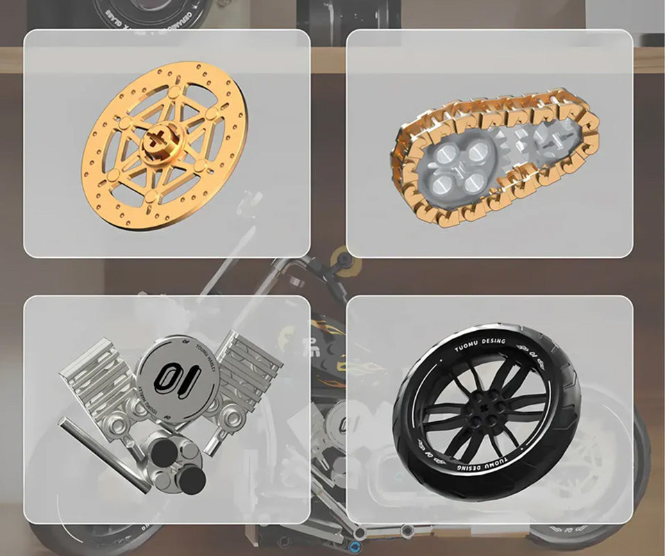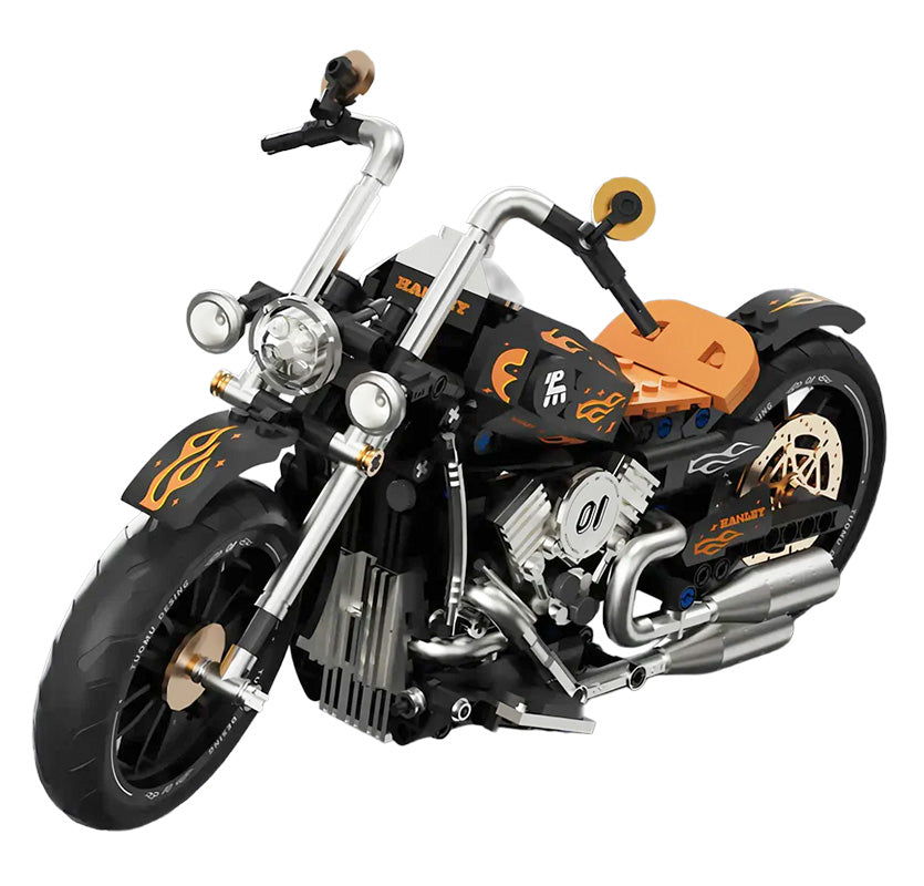 Šis ir foršs izaicinājums bērniem un pieaugušajiem, kam patīk konstruēt: 455 detaļu klucīšu komplekts, no kura var uzbūvēt detalizētu motocikla modeli. Gatavais mocis izskatās iespaidīgi ar saviem mehāniskajiem elementiem, liesmu dizaina akcentiem un “hroma” stila detaļām, tāpēc lieliski der arī kā plaukta vai galda dekorācija.