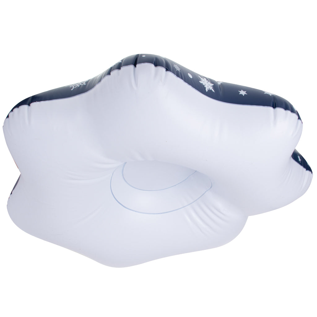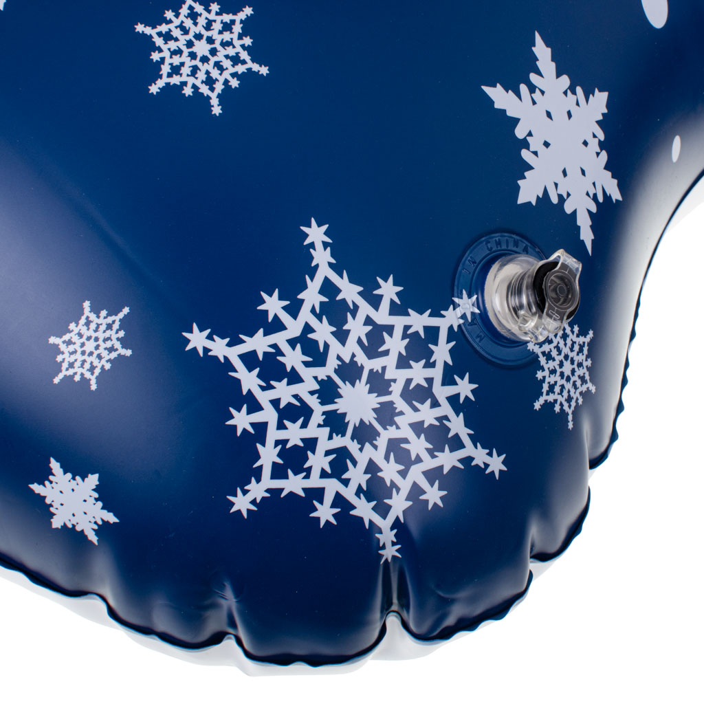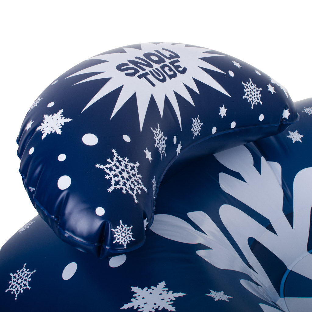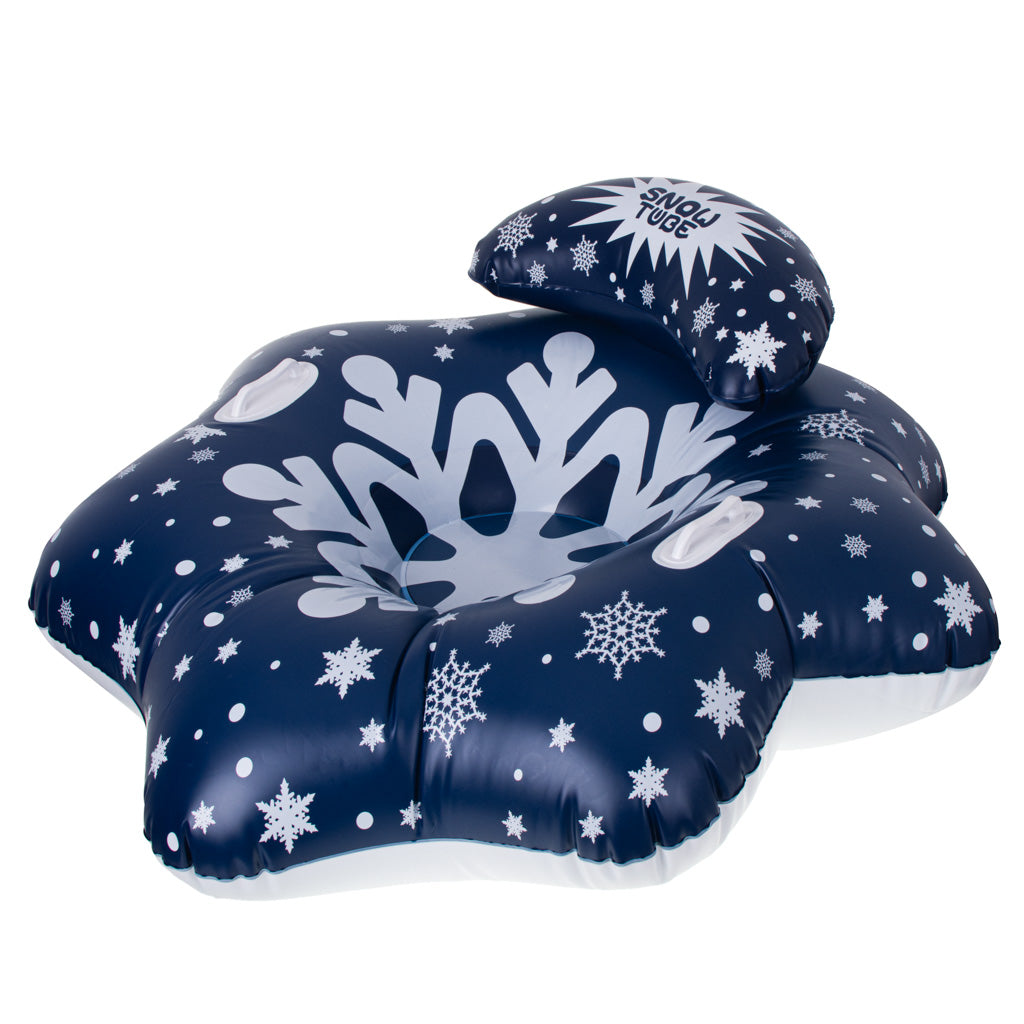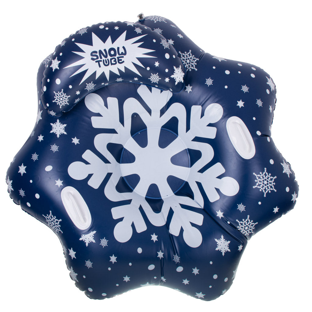Liels un ērts piepūšamais tubings ziemas izklaidēm – piemērots braukšanai lejup pa sniegotiem kalniņiem. 110 cm diametrs dod stabilu sēdpozīciju un vairāk vietas, bet 2 rokturi palīdz droši noturēties brauciena laikā.