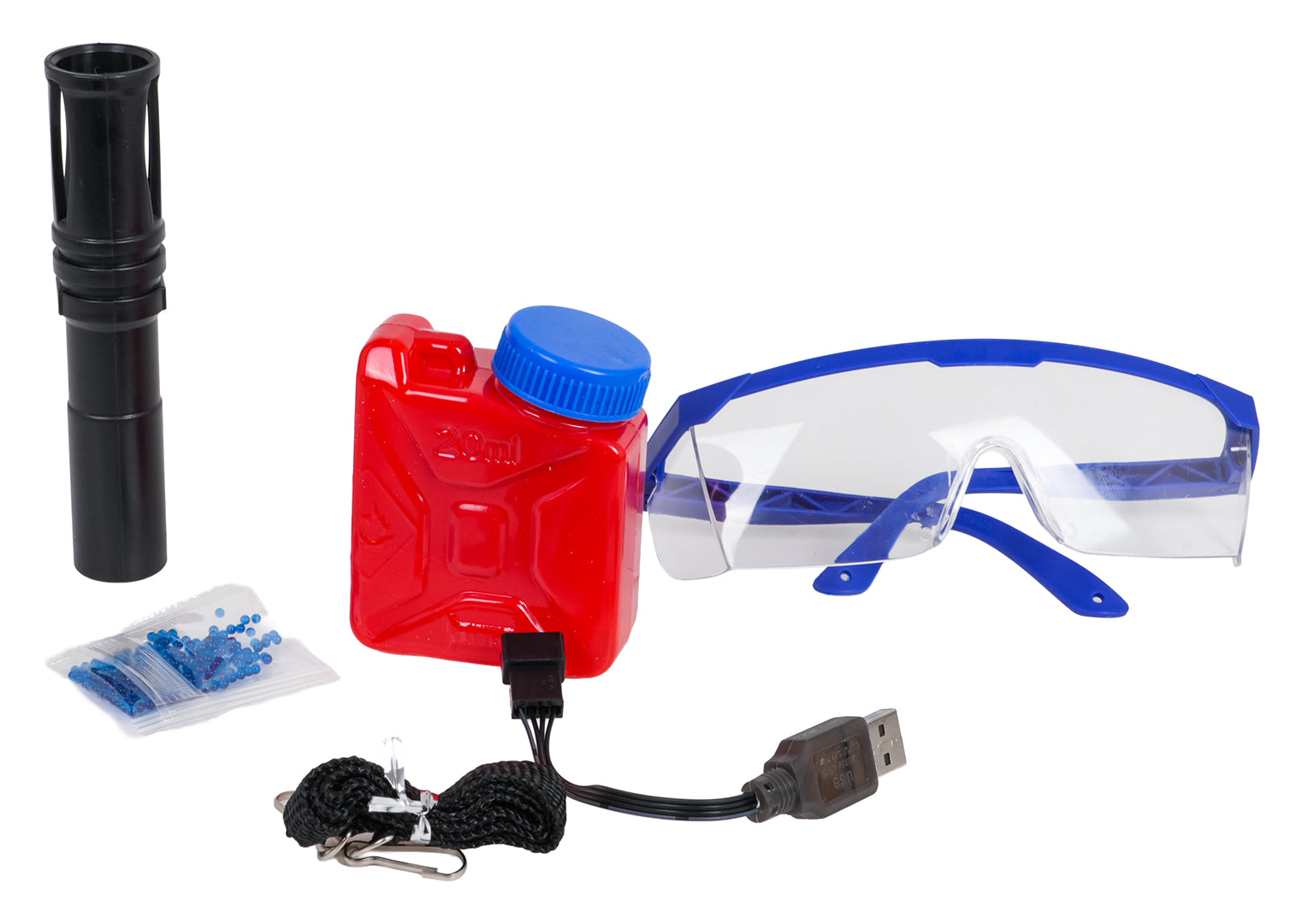 Blasteri darbina 7.4 V akumulators (iekļauts), uzlāde – ar USB kabeli.