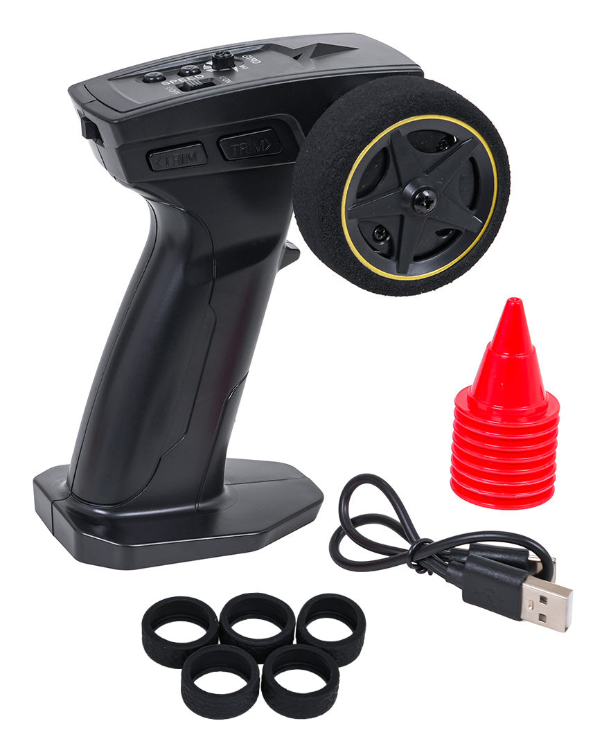Radiovadāma drifta mašīna 1:43 (4WD, Gyro) sudraba + piederumi, 14+