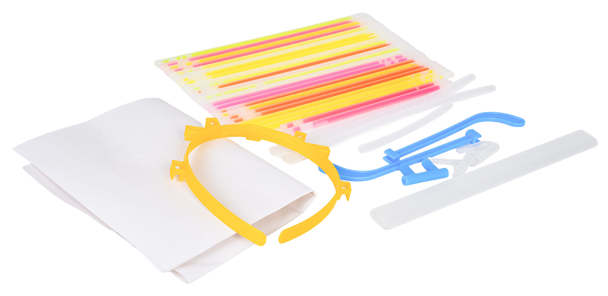 Lielais fluorescējošo nūjiņu komplekts ļauj izveidot spilgtu spīdošu kostīmu, aproces, kaklarotas, galvas stīpas un citus aksesuārus. Ideāli piemērots ballītēm, koncertiem, svētkiem brīvā dabā vai Helovīnam.
