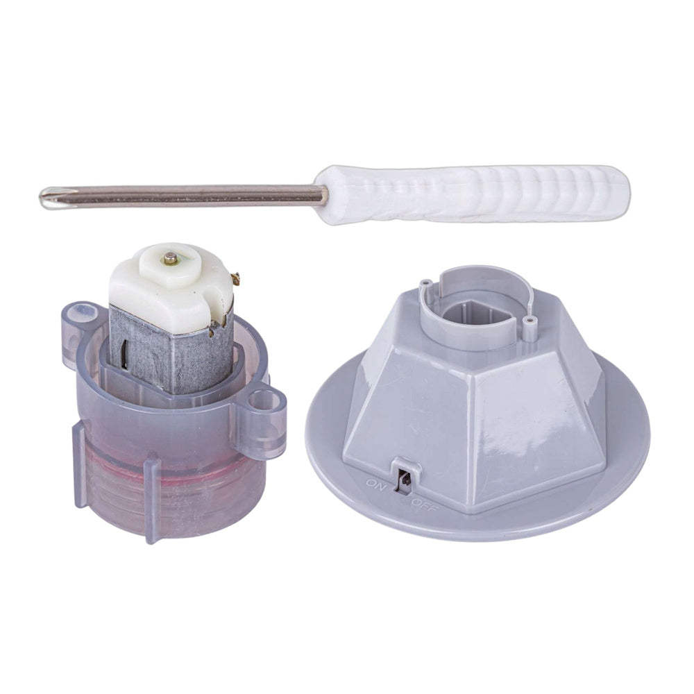 Komplektā ir montāžas detaļas un skrūvgriezis, kā arī skaidra instrukcija, lai visu var uzbūvēt soli pa solim. Nepieciešamas tikai 2×AA baterijas un parasta plastmasas pudele.